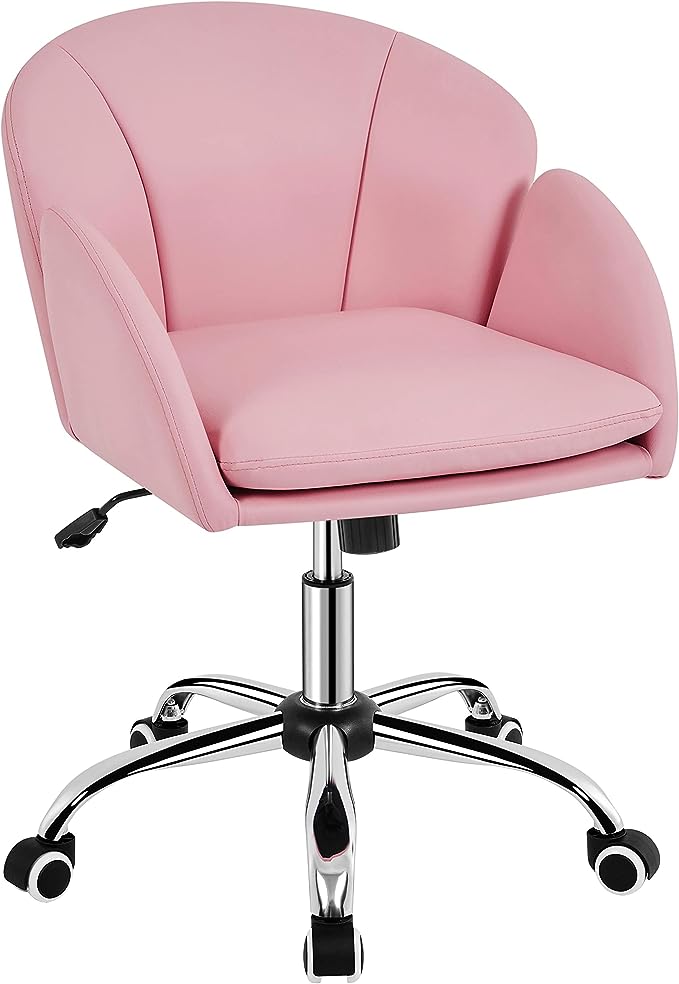 Yaheetech Cute Petal Desk Chair Home Office Chair Swivel Upholstered Leather Desk Chair Makeup Vanity Chair with Armrests for Bedroom Modern Computer Rolling Chair for Women Simple Pink