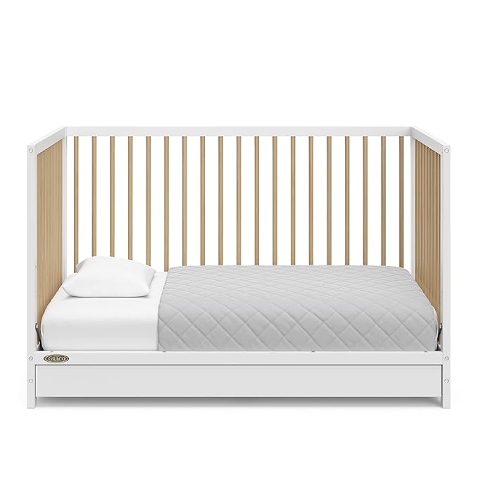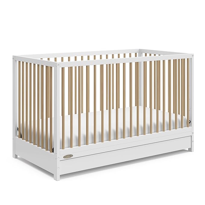 Graco Teddi 5-in-1 Convertible Crib with Drawer (White with Driftwood) – GREENGUARD Gold Certified, Crib with Drawer Combo, Full-Size Nursery Storage Drawer, Converts to Toddler Bed