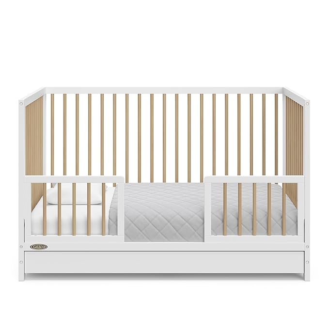 About This Wood 5-IN-1 CONVERTIBLE CRIB: Converts from baby crib (mattress sold separately) to toddler bed (compatible toddler guardrails sold...