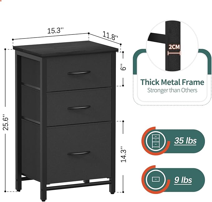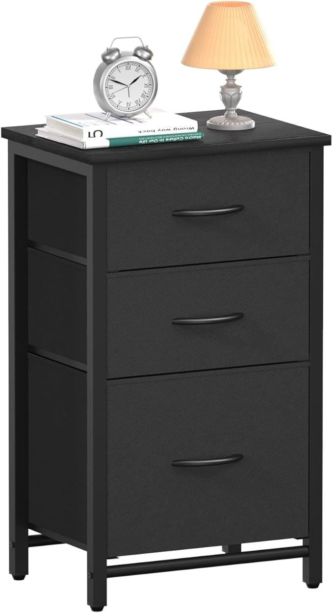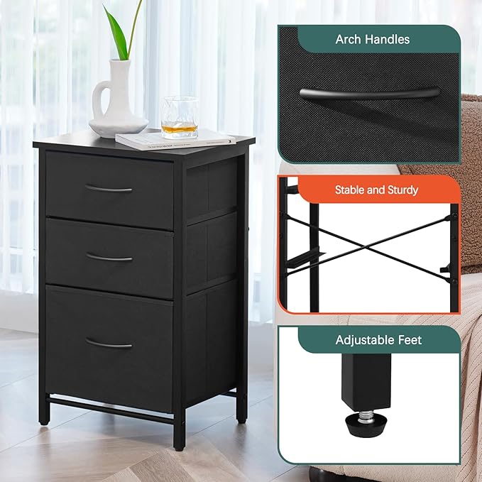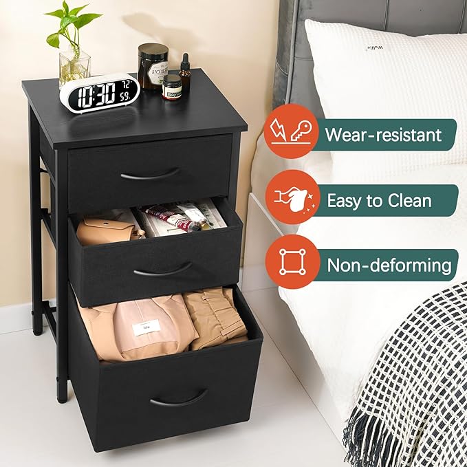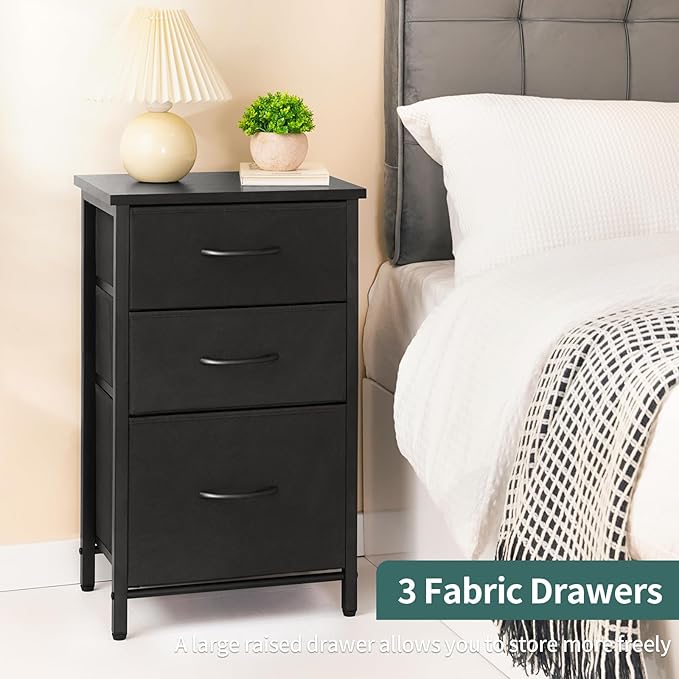 Yoobure Nightstand with Drawer, Night Stand Bedside Table with 3 Storage Drawers, Kid Nightstand with Three Fabric Drawer Modern Night Table, Bed Side Tables for Bedroom, Dorm and Small Spaces