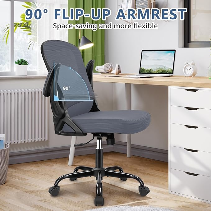 Office Chair Desk Chair, Ergonomic Mesh Computer Chair Home Office Desk Chairs, Swivel Task Chair Mid Back Breathable Rolling Chair with Adjustable Lumbar Support Flip Up Armrest (Dark Gray)