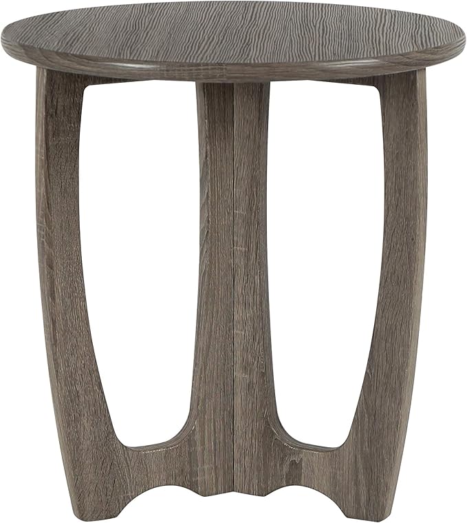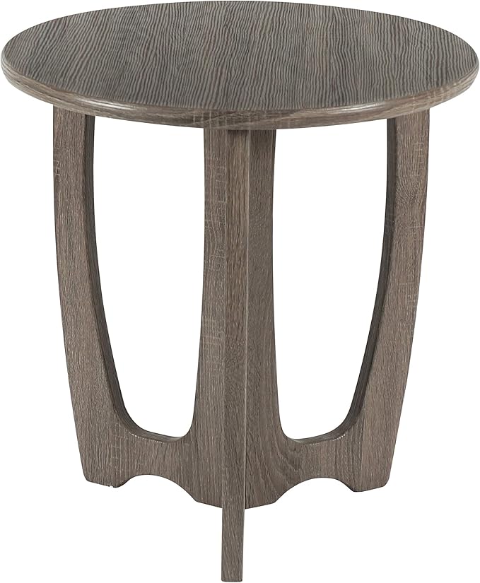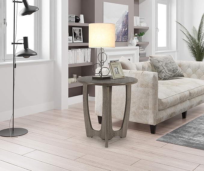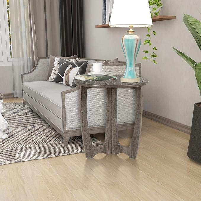 FINECASA Round End Table Small Rustic Side Table with Curved Legs Farmhouse Side Table Living Room, Bedroom, Entryway, Bedside, Nightstand (Grey)
