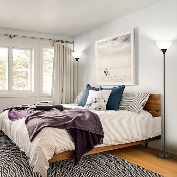Floor Lamp, LED Standing Lamps with White Plastic Shade, Black Modern Torchiere Floor Lamp, Tall Lamps for Living Room Dorm, Bulb not Included