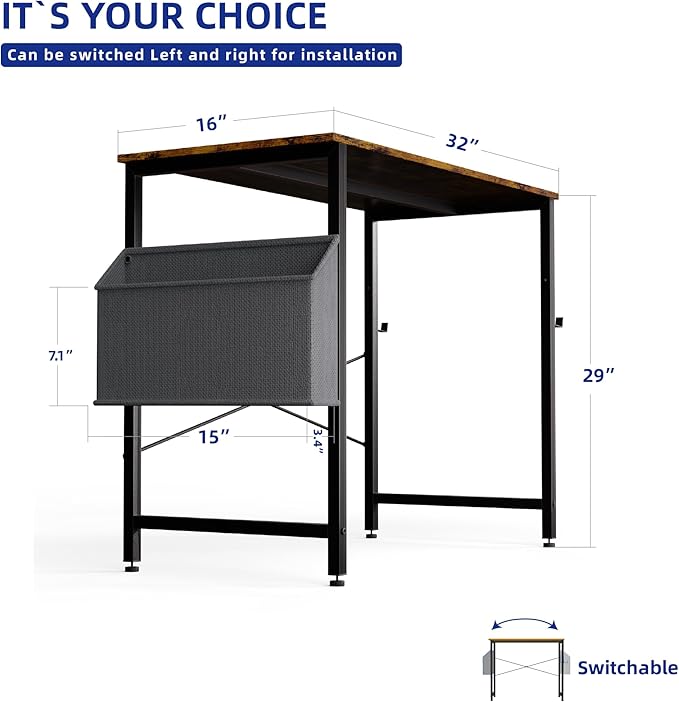 • Small Desk Dimension -- 32"(D) x 16"(W) x 29"(H).This small computer desk fits small spaces of the room and offers plenty of leg room for rest and storage.This computer desk is designed for home office work and also great for students , teens and kids writing and study.