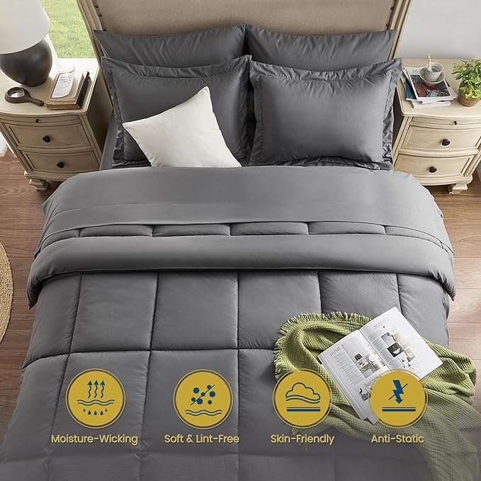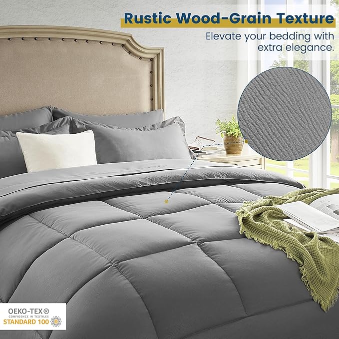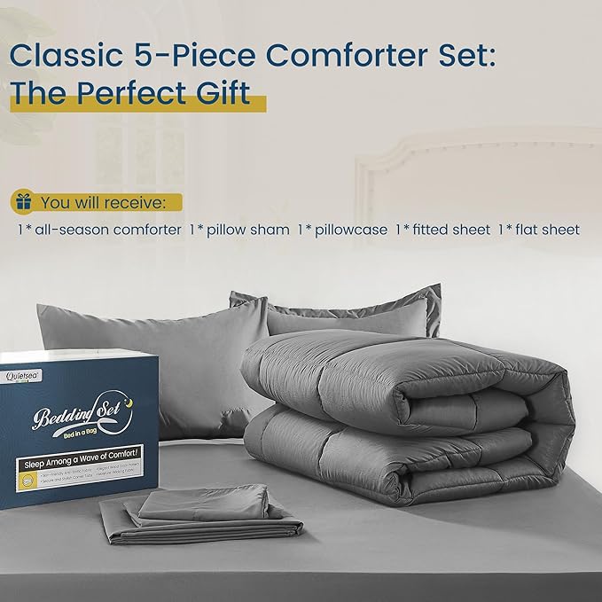 Twin XL Bed in a Bag 5 Piece Comforter Set, Dark Grey Texture Bedding, 68"x90" Comforter, Flat Sheet, Fitted Sheet, Pillow Sham, Pillowcase