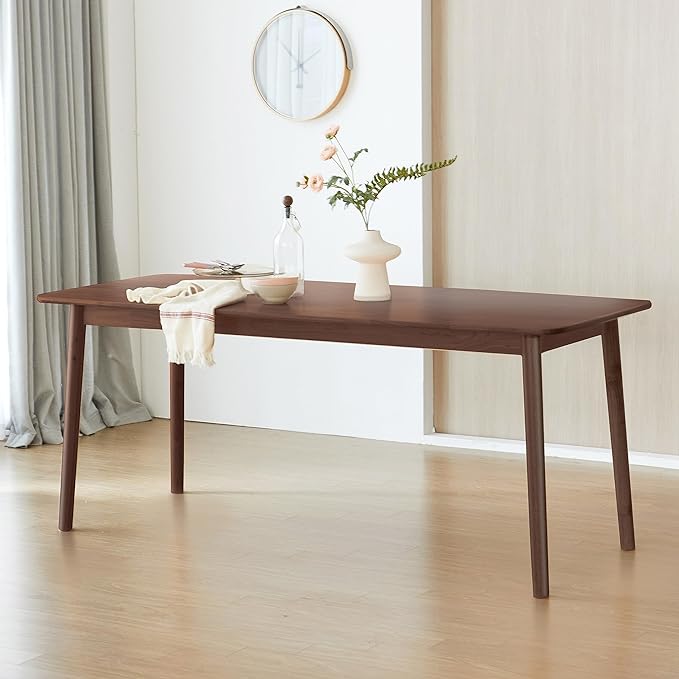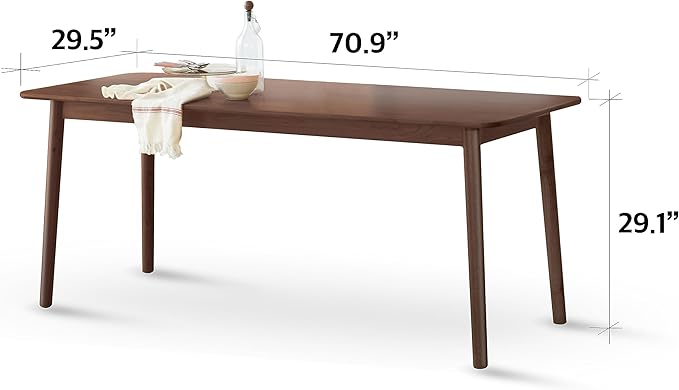 Livinia Aslan 70.9" Malaysian Oak Rectangular Wooden Dining Table/Large Solid Wood Kitchen Desk (Walnut)