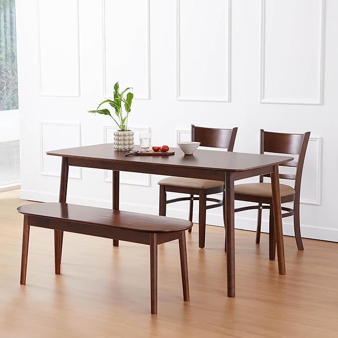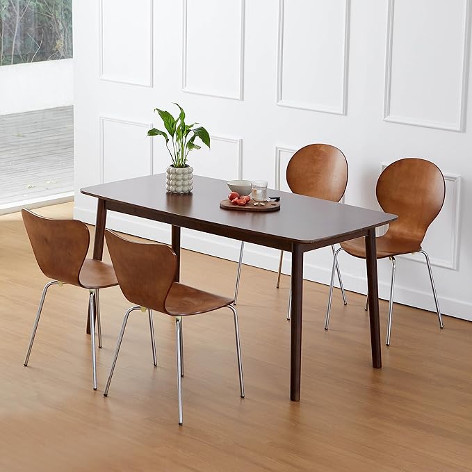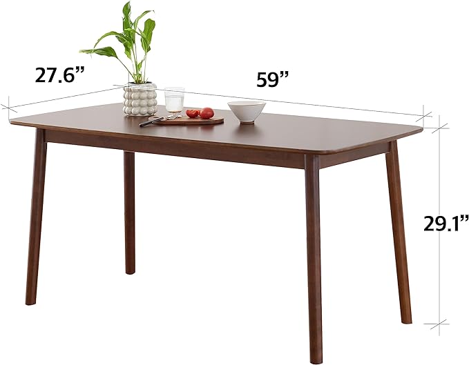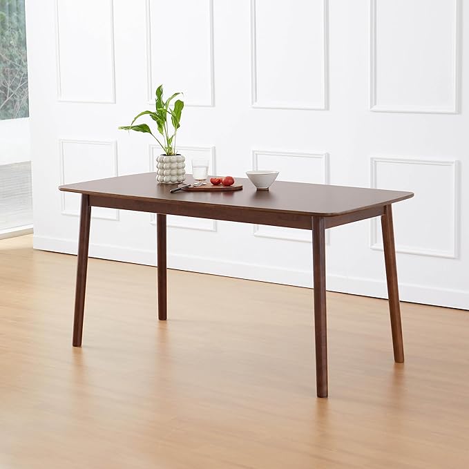 Livinia Aslan 59" Malaysian Oak Rectangular Wooden Dining Table/Large Solid Wood Kitchen Desk (Walnut)