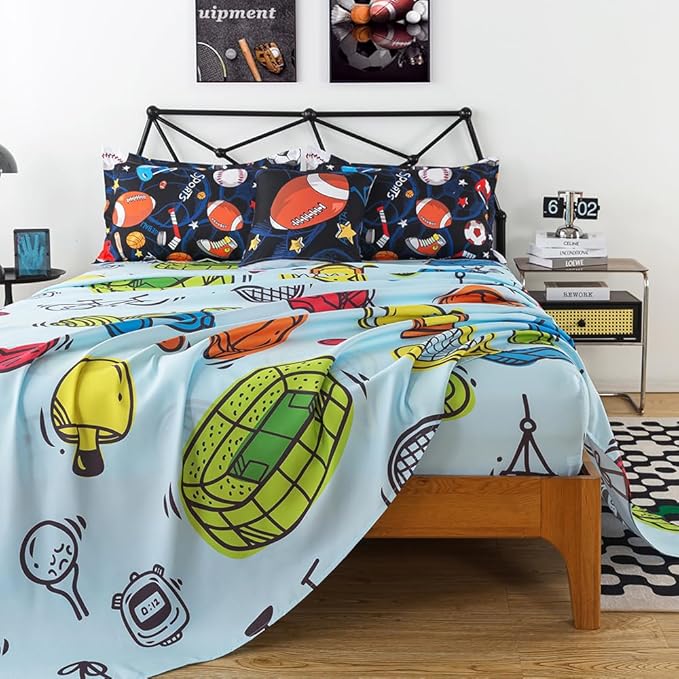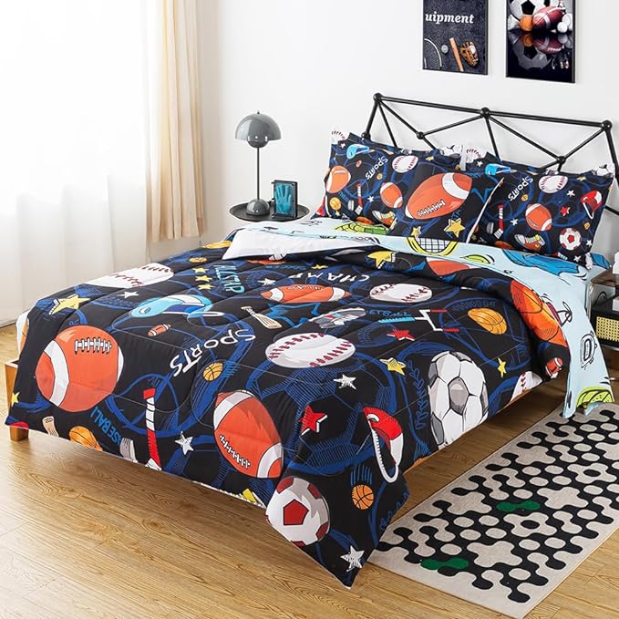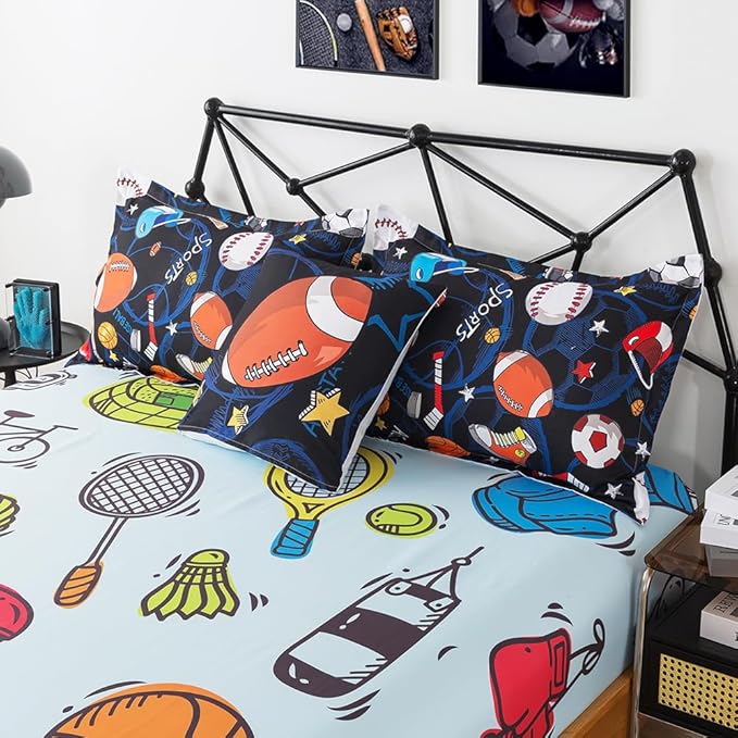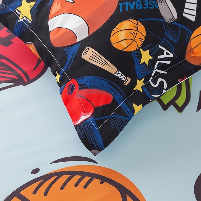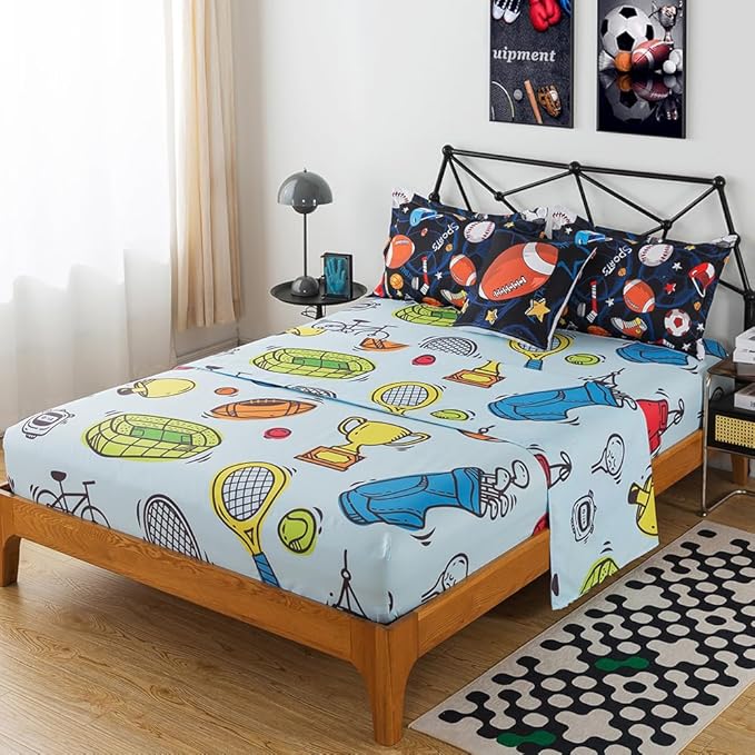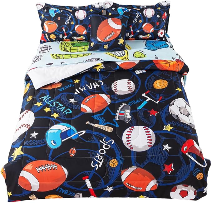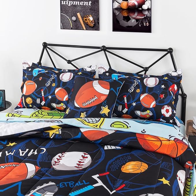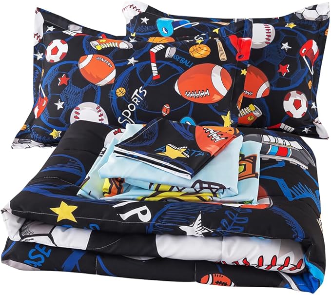 About This 6 Piece Sports Comforter Set: 1 twin size comforter68" x 86", 1 twin size fitted sheet 39" x...