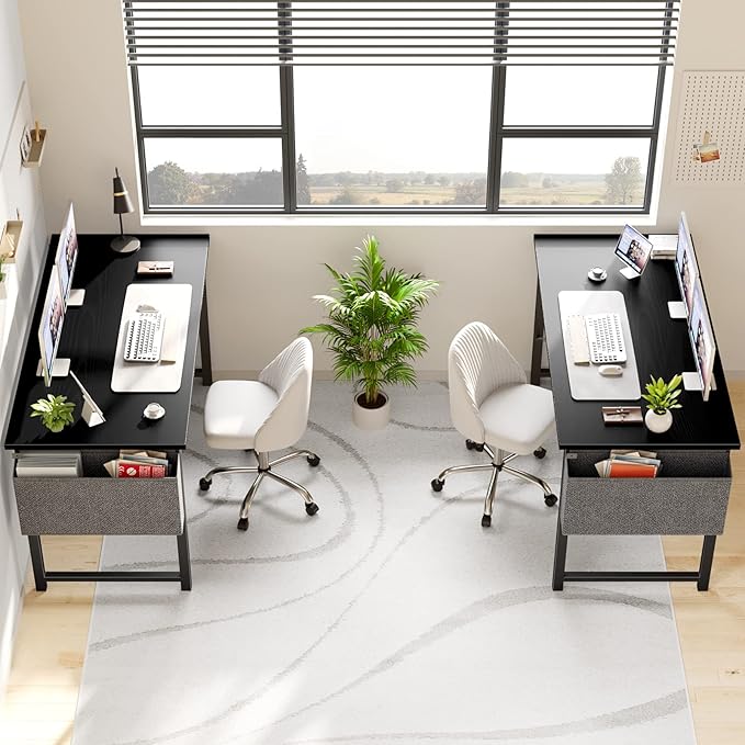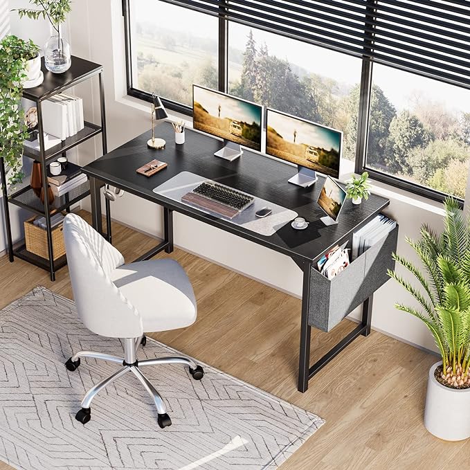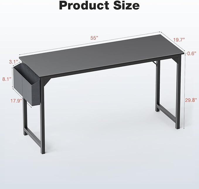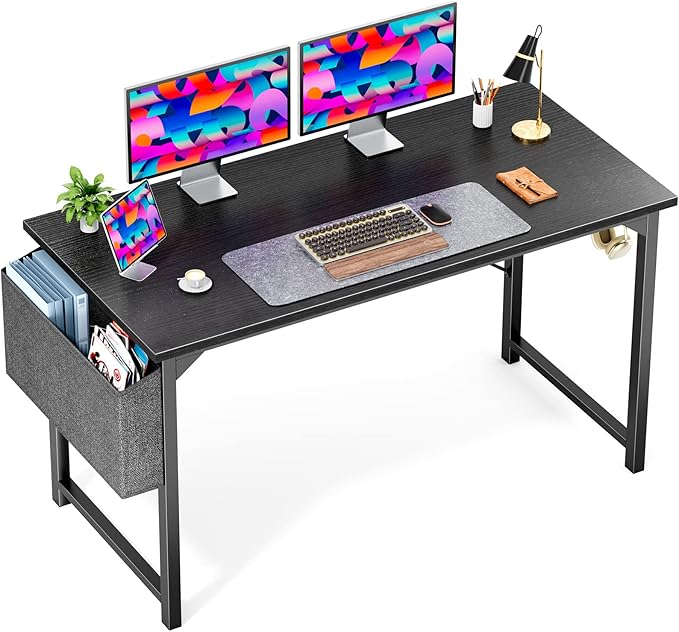 OLIXIS Computer Desk 55 Inch Home Office Work Study Writing Student Kids Bedroom Wood Modern Simple 2 Person PC Table with Storage Bag & Headphone Hooks, Black