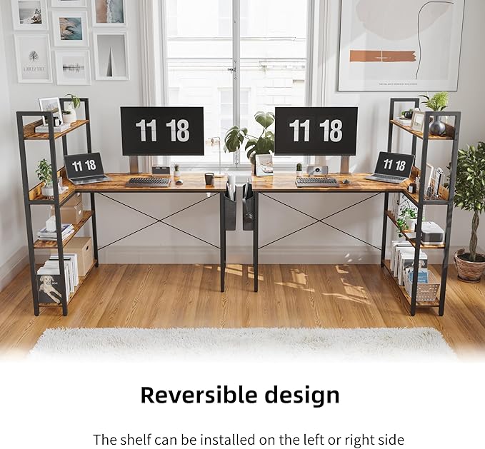 Treesland 55 Inch Computer Desk with Storage Shelves, L Shaped Desk with Storage, Corner Desk with Storage, Home Office Desks, Bookshelf Desk, Writing Study Desk for Bedroom, Brown