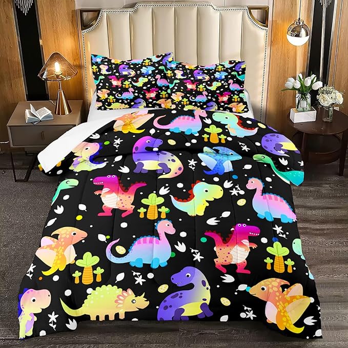 About This Fun Design: Our Cartoon Dinosaur Bedding Set Featuring clear and vivid cute dinosaurs patterns, this Cartoon Dinosaur bedding...