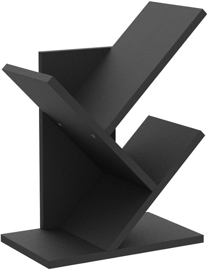 Tajsoon Tree Bookshelf 3 Tier Book Storage Organizer Shelves, Desktop Bookshelf Floor Standing Bookcase Display for CDs/Magazine/Books, Small Bookshelf for Bedroom, Living Room&Office, Black