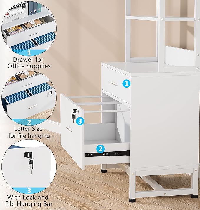 About This Multifunctional Office Furniture: This file cabinet with drawers and shelves will bring high function to your home office,...