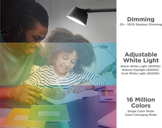 BLACK+DECKER Verve Designer LED Clamp Light, Fits Shelves, Cubicles & Headboards, True White LED + 16M RGB Colors