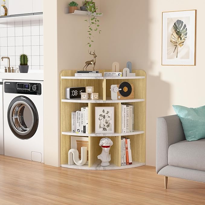 Vecelo 3-Tier Corner Cabinet with 8 Cubbies, Wooden Cube Storage Organizer, Modern Bookshelf Units for Playroom, Bedroom, Living Room, Marble White