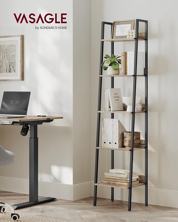 VASAGLE Bookshelf, 5-Tier Narrow Bookcase, Ladder Shelf for Home Office, Living Room, Bedroom, Kitchen, Camel Brown and Black ULLS109B50V2