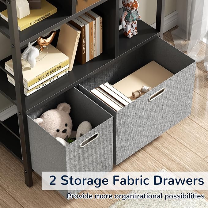 armocity 74 Inch Tall Bookshelf, 6 Tier Bookcase with Drawers, Modern Book Shelf Display Standing Shelf Units with Storage, Wood and Metal Bookshelves for Living Room, Bedroom, Home Office, Black