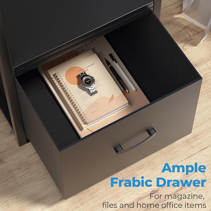 About This L SHAPED DESK WITH DRAWER: The l desk comes with a fabric drawer, large size design 18.9"x16.5"x12.6"(LxWxH), which...