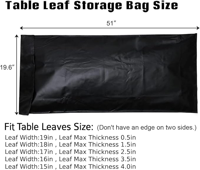Table Leaf Storage Bag Padded 1 Pack, Heavy Duty Dining Table Leaf Bag, 48 x 16in Extra Thick Flannel Backing Interior/Exterior Dining Room Table Cover Protector, Scratch Resistant, Black