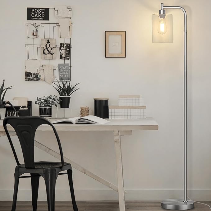 MAXvolador Industrial Floor Lamp, Modern Standing Lamp with Hanging Clear Glass Shade, Classic Reading Tall Pole Light for Living Room, Brushed Nickel