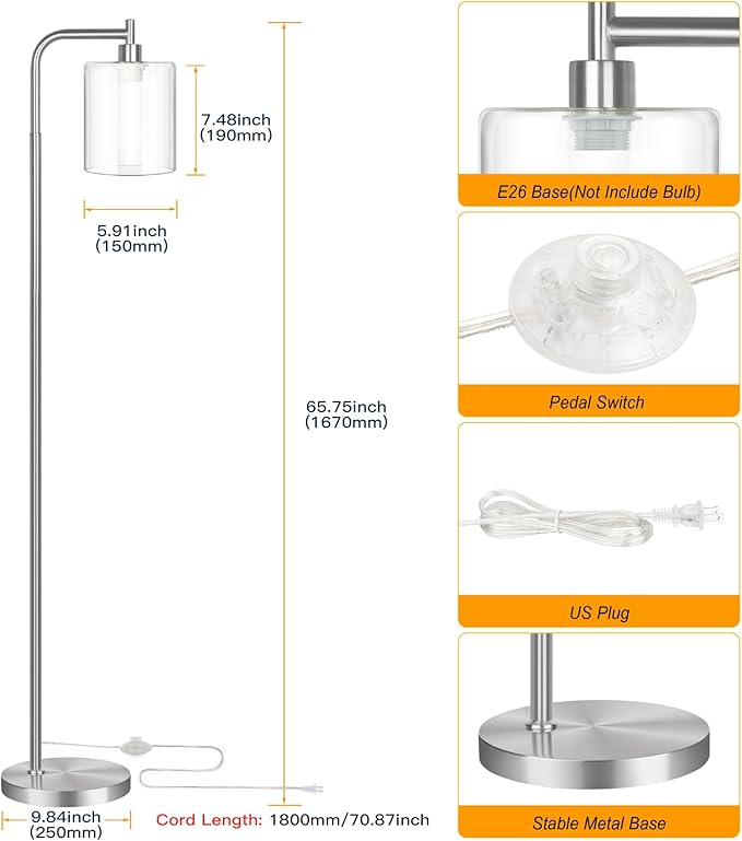 About This Modern & Industrial Design--Inspired by the modern minimalist design concept, our farmhouse standing lamp mixed anti-rust finished silver...