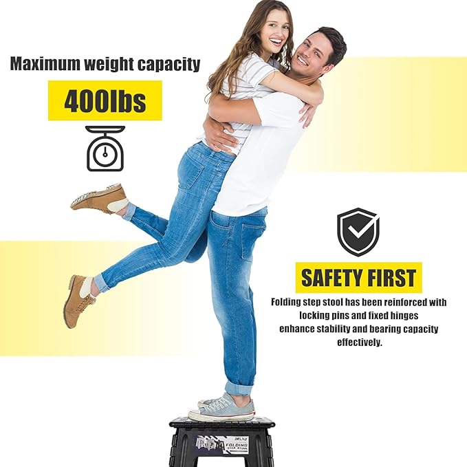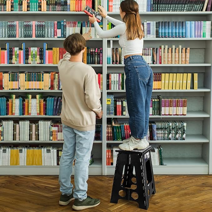 Delxo 17.5 Inch Folding Step Stool, Heavy Duty Foldable Stool for Adults,Premium Portable Collapsible Plastic Step Stool,Non Slip Folding Stools for Kitchen Bathroom Bedroom Up to 400LBS,(Black 1PC)