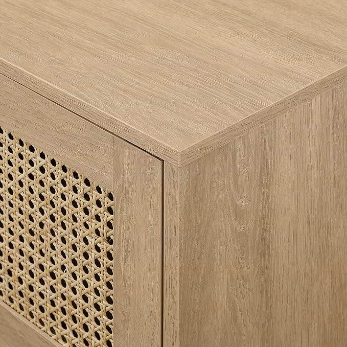 Walker Edison Destin Modern Minimal Rattan-Door Stand for TVs up to 80 Inches, 70 Inch, Coastal Oak