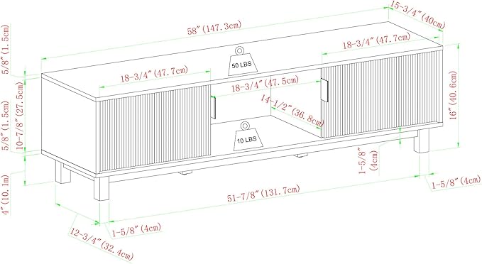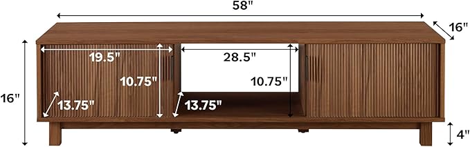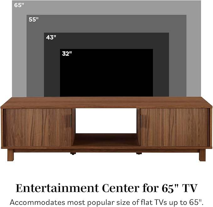 About This Sleek, low profile Minimalist, black metal hardware Fluted-door lends a luxe look Accommodates TVs up to 65 inches...