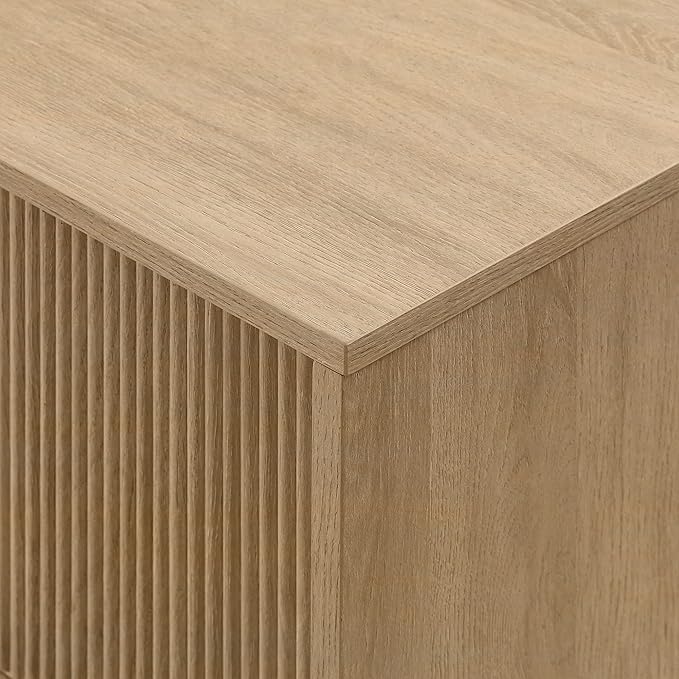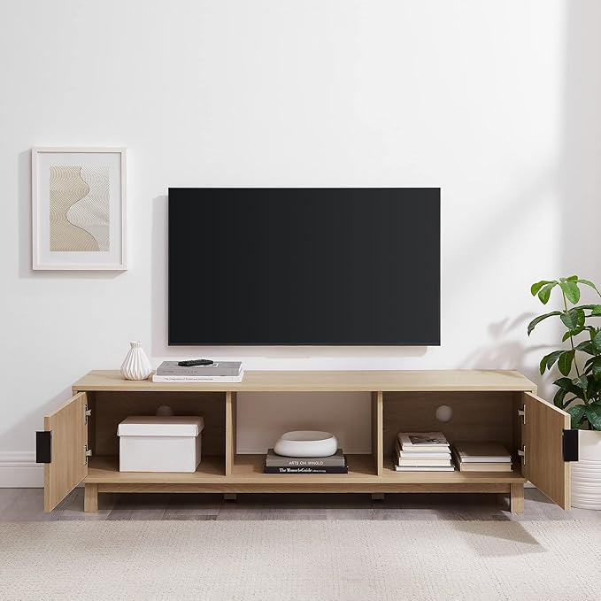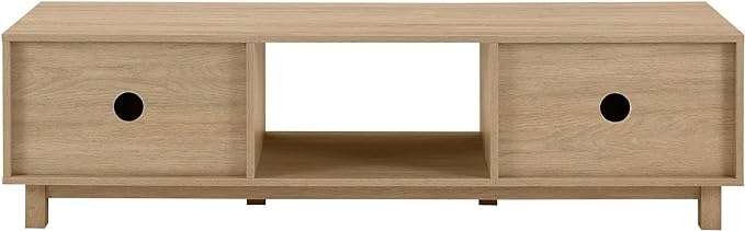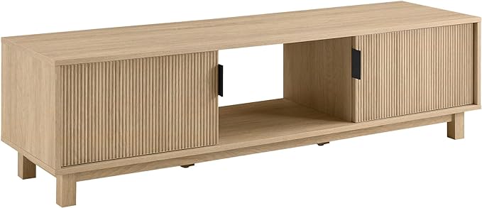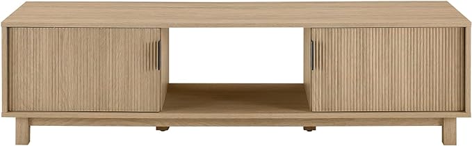 Walker Edison Walton Modern Fluted-Door Low Stand for TVs up to 65 Inches, 58 Inch, Coastal Oak