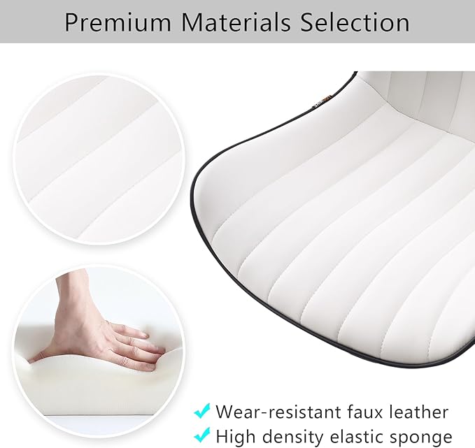 YOUNIKE White Office Chair Swivel Leather Desk Chair, Upholstered Adjustable Computer Task Chair with Wheels, Modern Armless Rolling Gaming Chair Mid Back