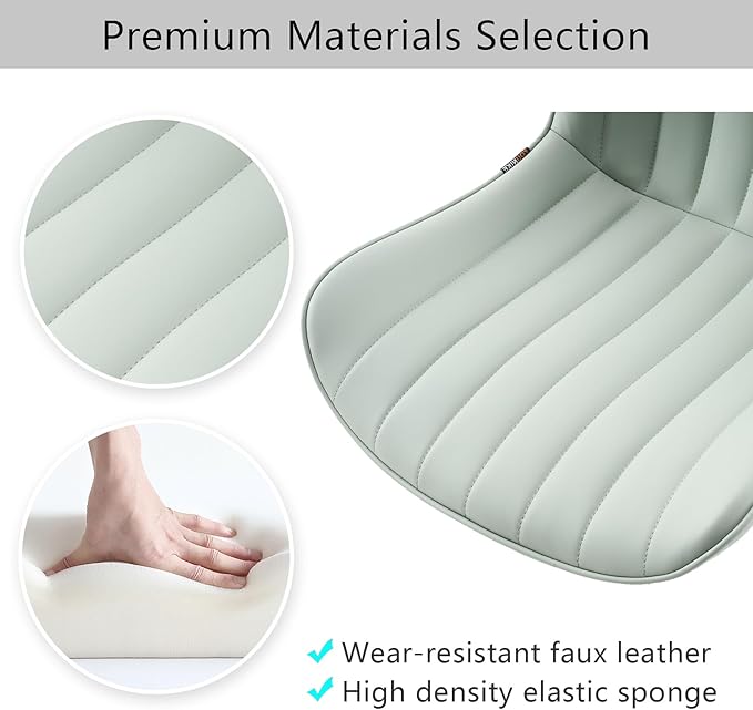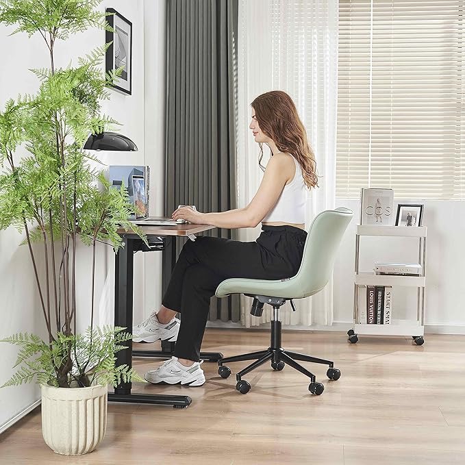 YOUNIKE Armless Office Chair Swivel Desk Chair, Upholstered Leather Computer Gaming Chair with Wheels, Adjustable Modern Rolling Task Chair Mid Back, Mint Green