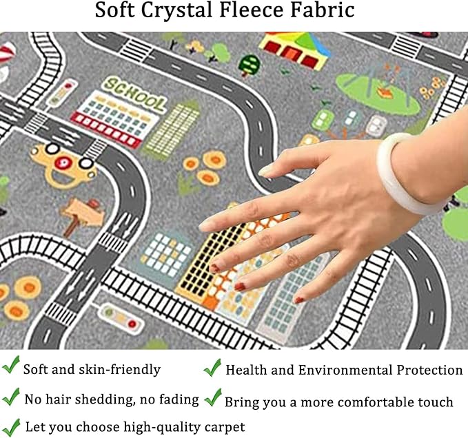• 【KIDS LEARNING RUG】:The Traffic road rug printed with various buildings and scenes,includes road/street,buildings,school,parking lot,cars and so much more.Let your child learning through playtime, inspire the curiosity in your babys heart and promote early education.