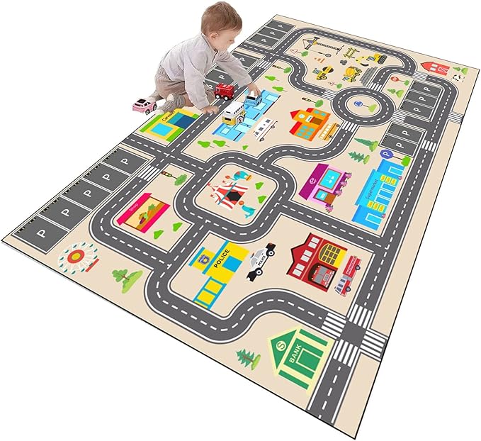 About This 【KIDS LEARNING RUG】:The Traffic road rug printed with various buildings and scenes,includes road/street,buildings,school,parking lot,cars and so much more.Let...