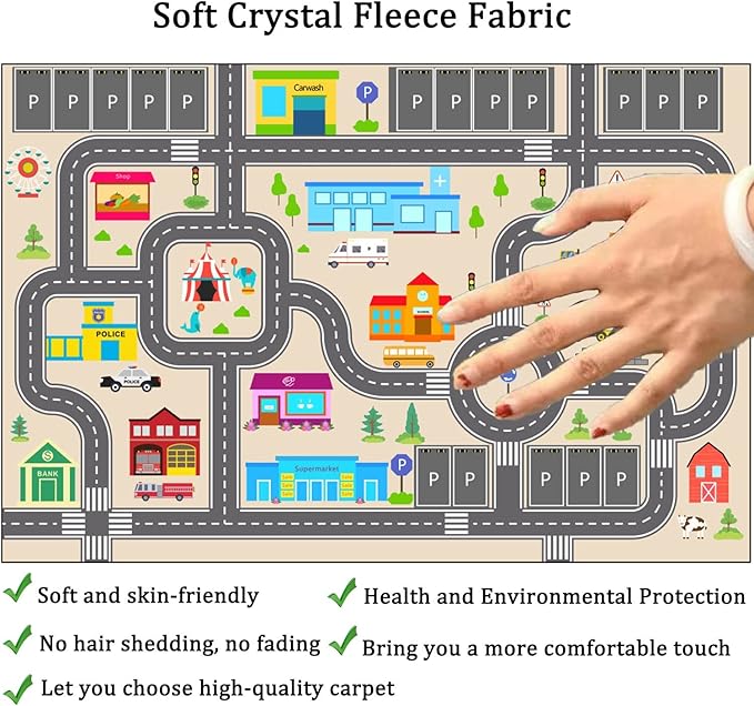• 【KIDS LEARNING RUG】:The Traffic road rug printed with various buildings and scenes,includes road/street,buildings,school,parking lot,cars and so much more.Let your child learning through playtime, inspire the curiosity in your babys heart and promote early education.