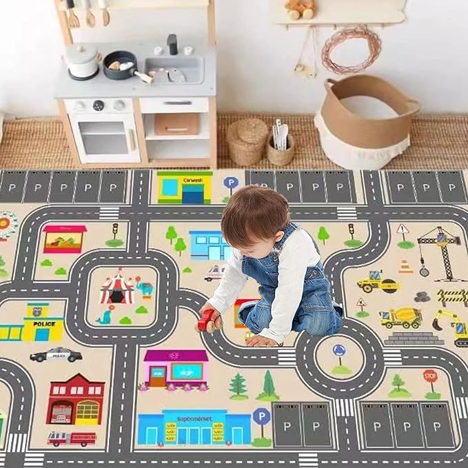 About This 【KIDS LEARNING RUG】:The Traffic road rug printed with various buildings and scenes,includes road/street,buildings,school,parking lot,cars and so much more.Let...