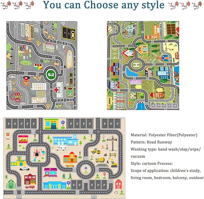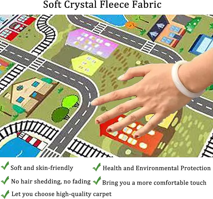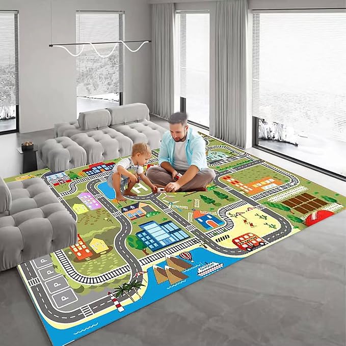 About This 【KIDS LEARNING RUG】:The Traffic road rug printed with various buildings and scenes,includes road/street,buildings,school,parking lot,cars and so much more.Let...