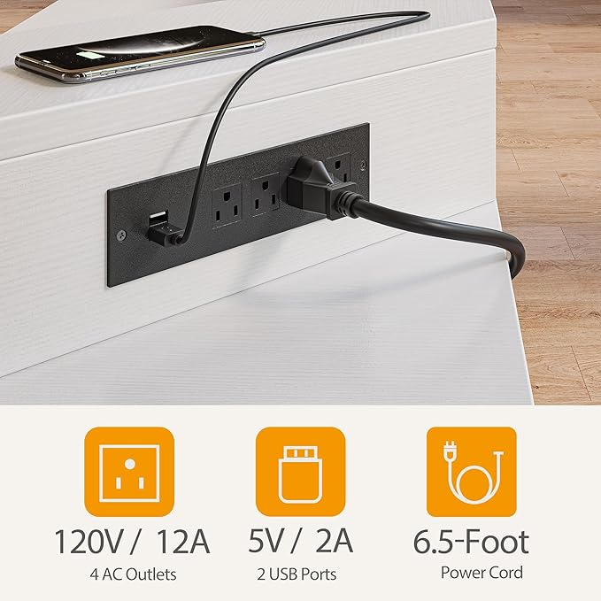 CubiCubi L Shaped Gaming Desk with LED Lights and Power Outlets, 58" Reversible Corner Computer Desk with Storage Shelves and Drawer, Home Office Desk with Monitor Stand, White