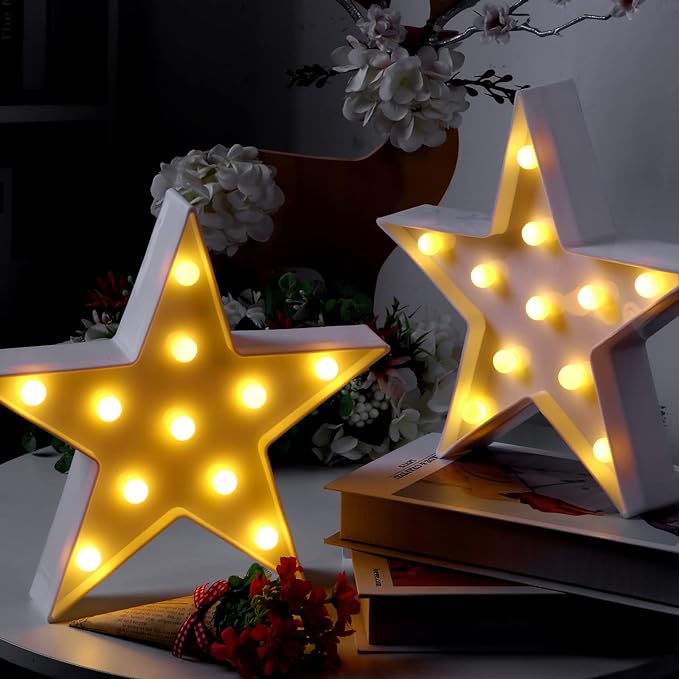 4 Pcs Star Plastic Night Light Battery Operated LED Marquee Star Sign Star Shaped Party Movie Theater Decor Room Wall Lamp for Kids Baby Child Girl Gifts, Birthday Party Christmas Home Bar (White)