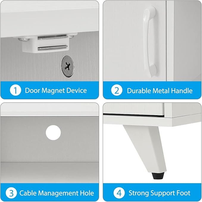 Panana TV Stand, Entertainment Center with 2 Doors and 2 Cubby Storages Cabinets for up to 65 inch for Living Room Bedroom (White, 53.5 inch)