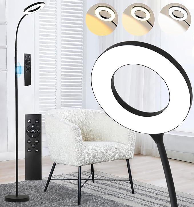LED Floor Lamp, Bright 18W Floor Lamps for Living Room with 1H Timer, Stepless Adjustable 2700-6500K Colors & Brightness Tall Standing Lamp with Remote & Touch Control Reading Floor Lamps