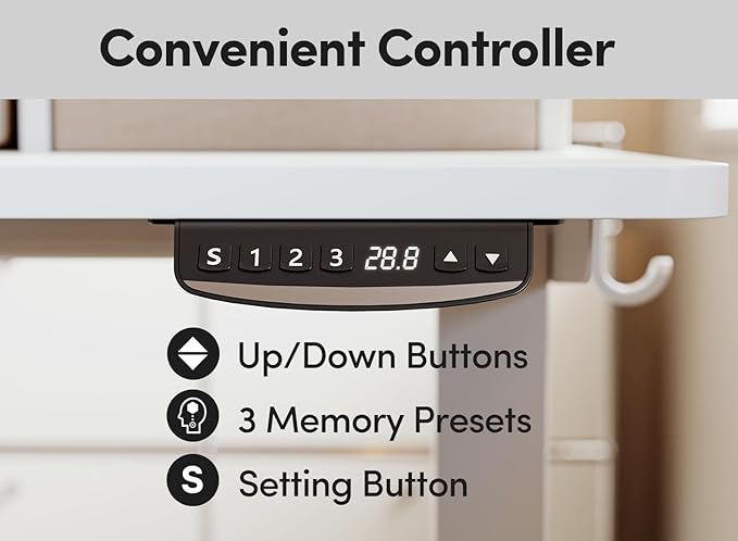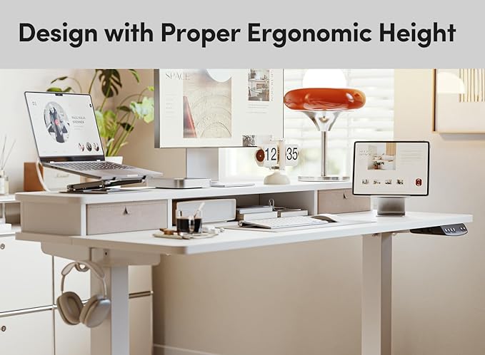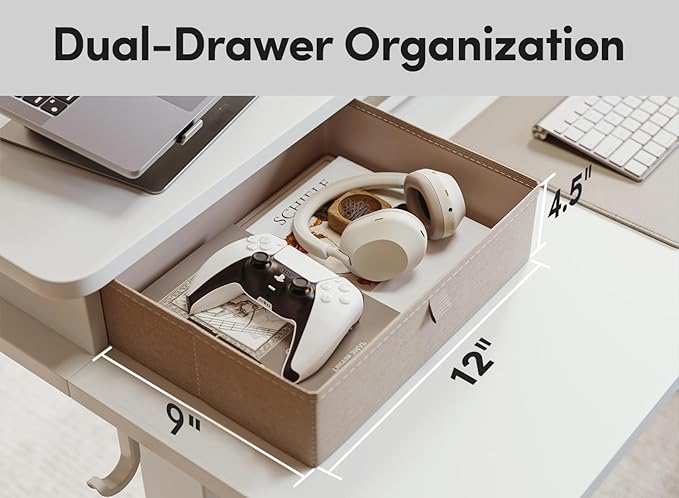 BANTI 40x24 Inch Electric Standing Desk with Double Drawers, Adjustable Height Stand Up Desk, Sit Stand Home Office Desk with Storage Shelf, White Top