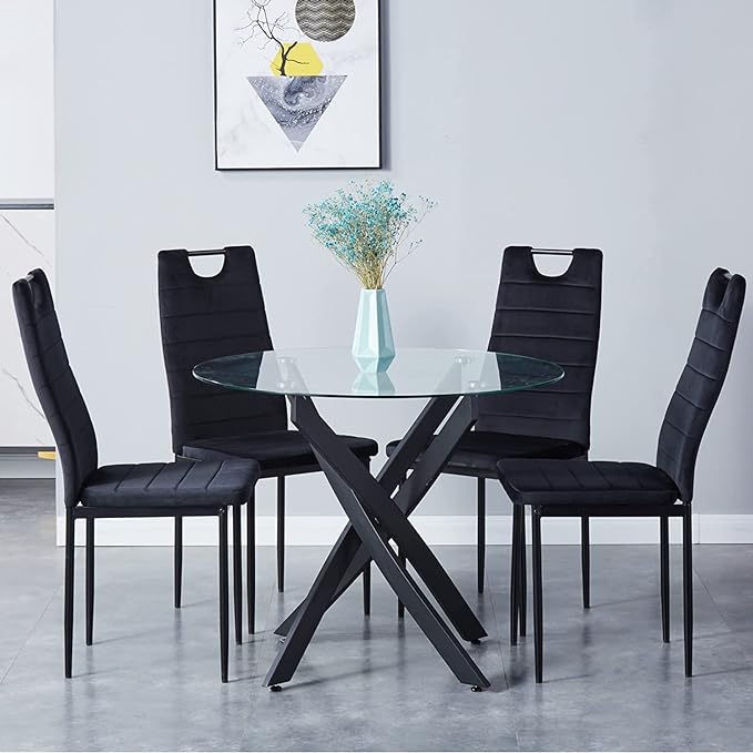 Round Tempered Glass Dining Table for 2-4 with Metal Legs, 35.5 in Modern Small Kitchen Table for Kitchen Dining Room (Black)