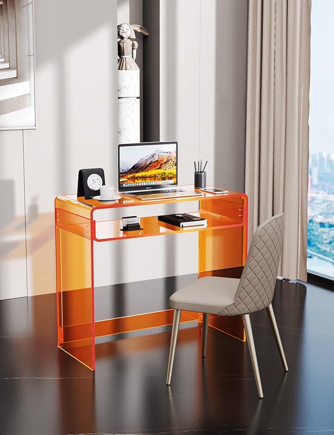 Acrylic Desk Laptop Workstation Study Table Home Office Console Table Entrance Table Decor (Orange)