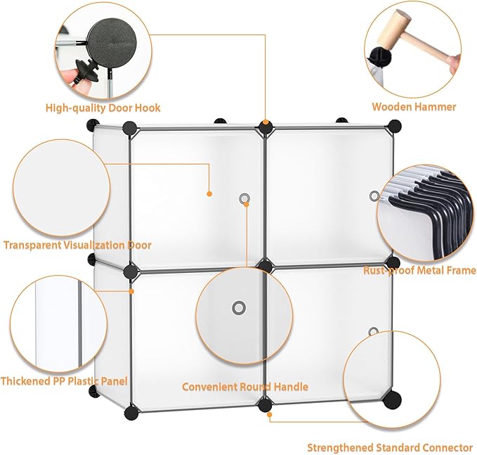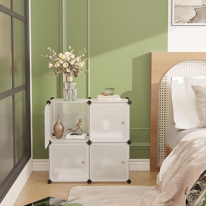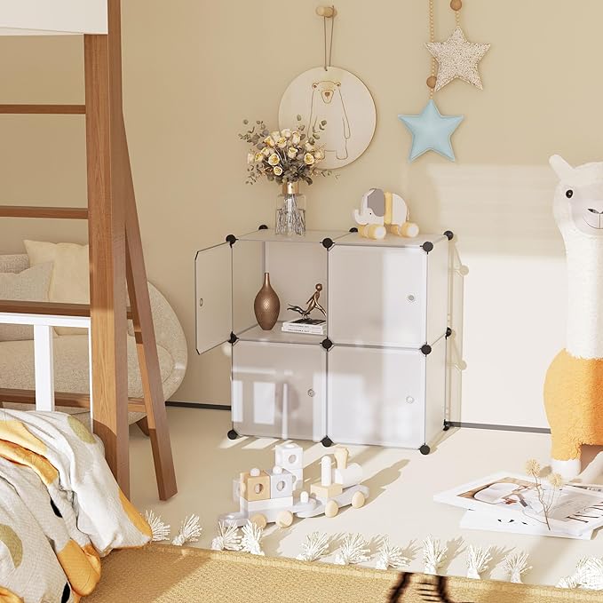 C&AHOME Cube Storage Organizer with Doors, 4-Cube Shelves, Closet Cabinet, DIY Plastic Modular Bookshelf Ideal for Bedroom, Living Room, 24.8" L x 12.4" W x 24.8" H White USHS04W-DOOR