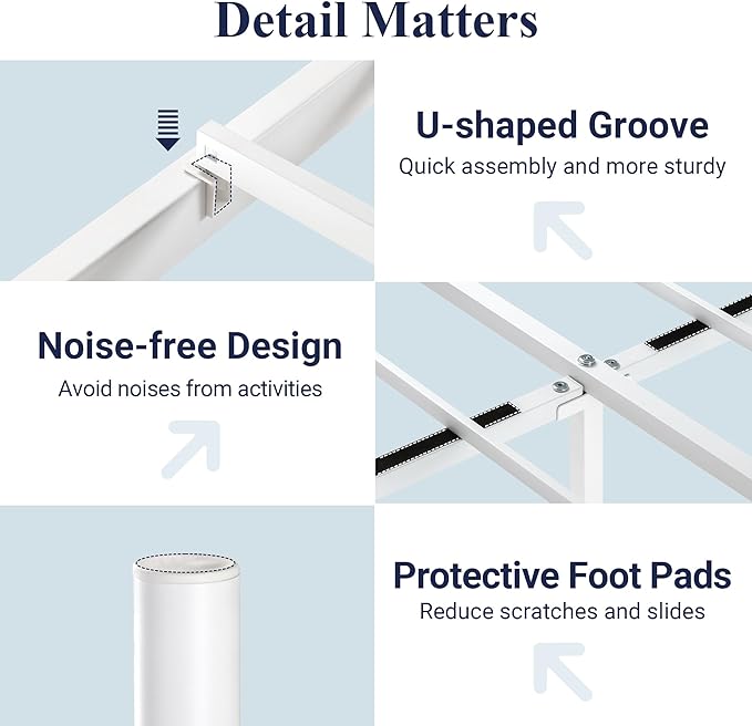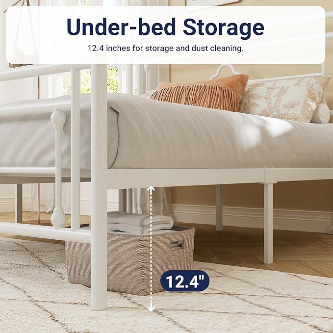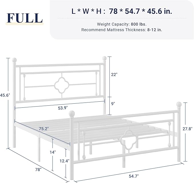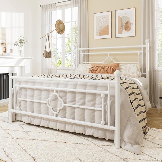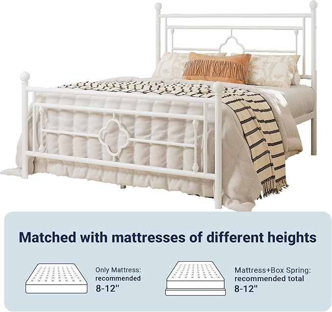 Allewie Full Size Metal Platform Bed Frame with Victorian Vintage Headboard and Footboard/Mattress Foundation/Under Bed Storage/No Box Spring Needed/Noise-Free/Easy Assembly, White