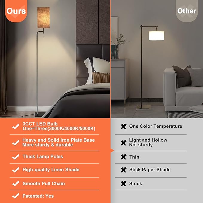 About This FLOOR LAMPS WITH 3 COLOR TEMPERATURES BULB: The floor lamps for bedroom came with a 3 color temperatures...