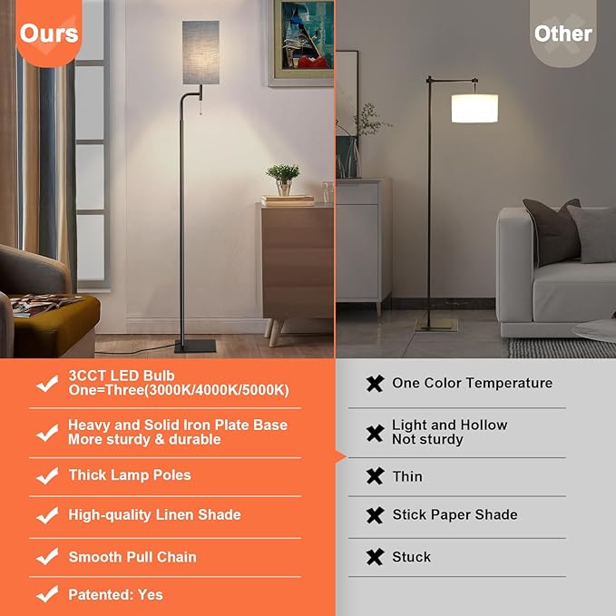 About This FLOOR LAMPS WITH 3 COLOR TEMPERATURES BULB: The floor lamps for bedroom came with a 3 color temperatures...