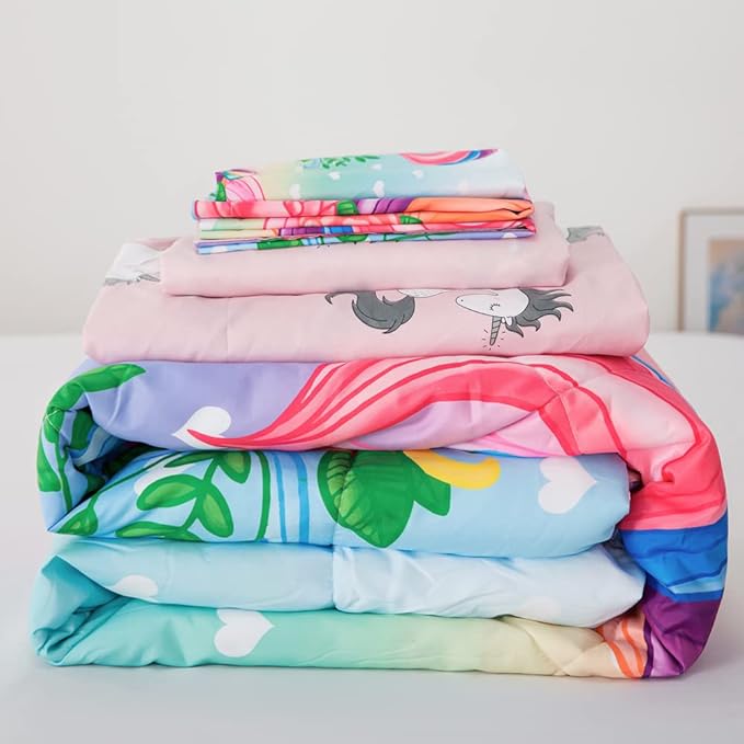 About This Unicorn Design: This blue pink gradient comforter has AB sides, the A side is rainbow floral unicorn patterns,...