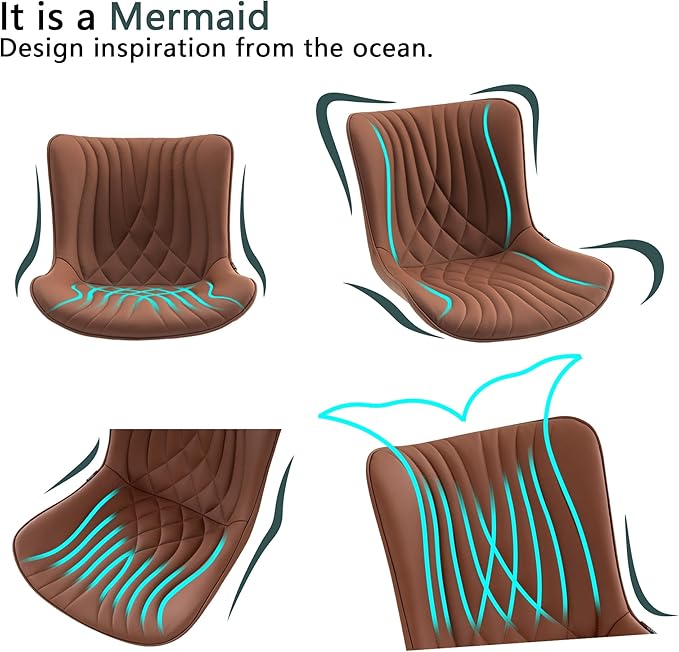 YOUTASTE Coffee Brown Office Chair Modern Armless Desk Chair with Wheels Adjustable Swivel Rocking Rolling Computer Study Chairs Faux Leather Sewing Chairs with Back Stylish Vanity Chair
