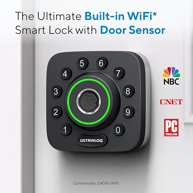 ULTRALOQ U-Bolt Pro WiFi Smart Lock with Door Sensor, 8-in-1 Keyless Entry Door Lock with Fingerprint ID, App Remote Control, Built-in WiFi Keypad Deadbolt, Auto Unlock, IP65 Waterproof, Easy Install